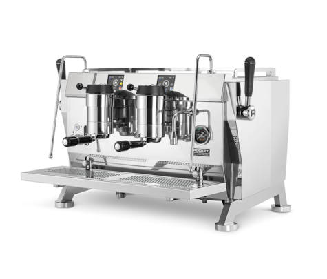 A Rocket Espresso R 9V 3 grupos é uma máquina de café profissional multiboiler com perfis de pressão. Tecnologia de perfil de pressão . Grupos saturados. Tela sensível ao toque. Máquina de café expresso de alta qualidade.